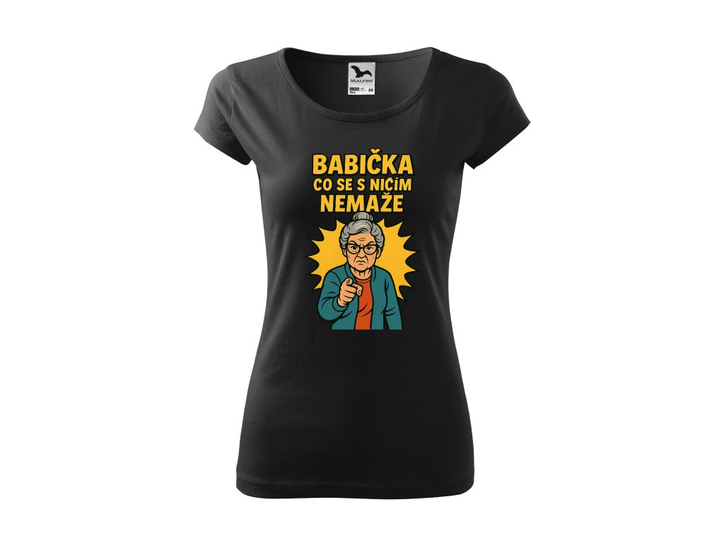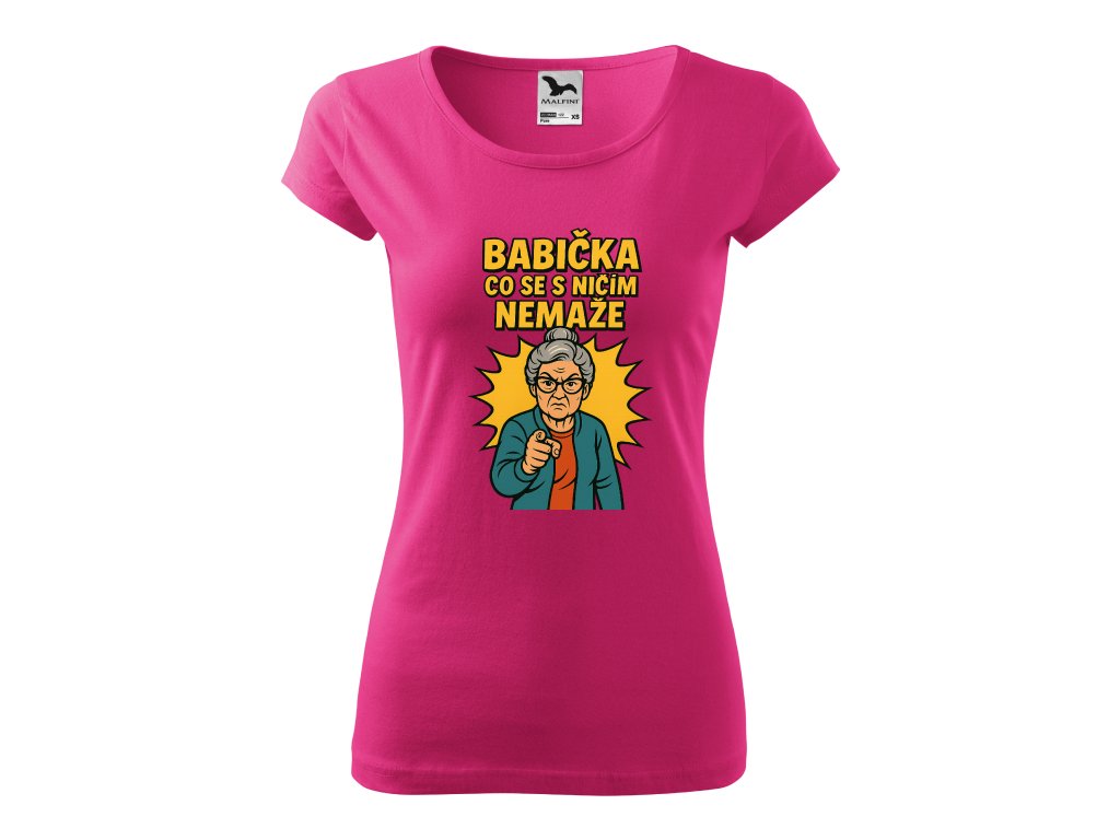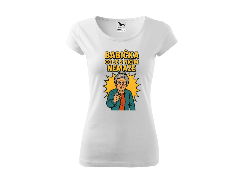 Dámské tričko – Babička, co se s ničím nemaže (barevný komiksový motiv)