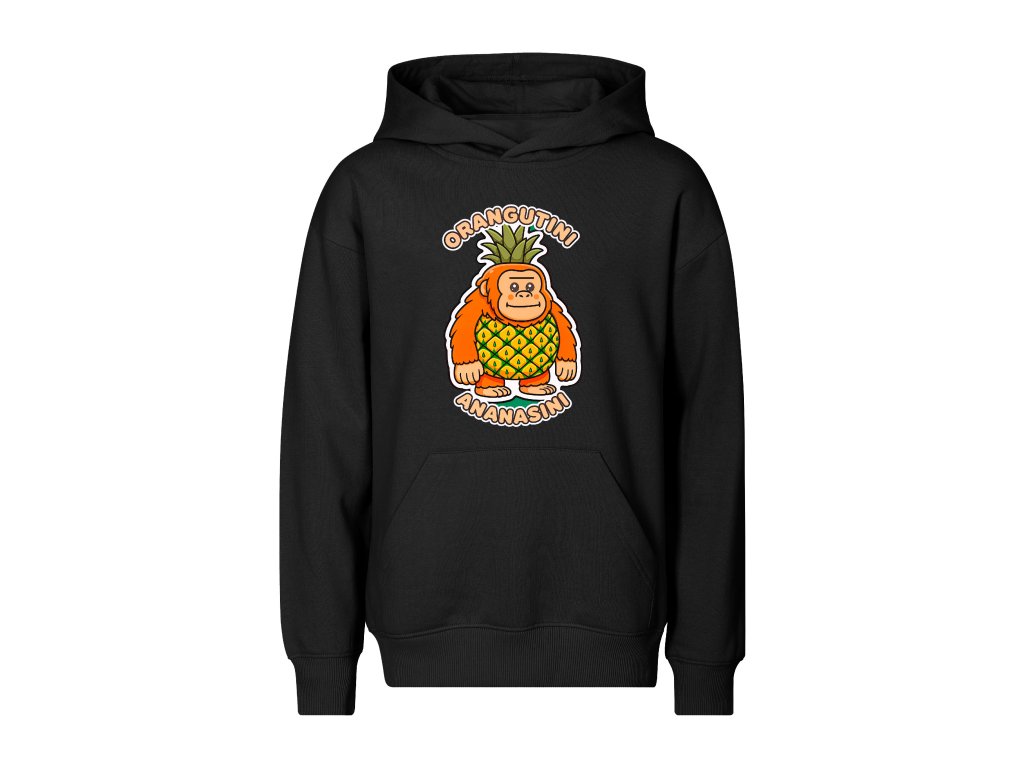 Dětská mikina Orangutini Ananasini je součástí oblíbené série Italian Brainrotů, která si zakládá na hravých motivech, lehkém chaosu a originálním humoru. Skvěle se hodí jako dárek k narozeninám, Vánocům nebo jen tak pro radost – mikina, která děti baví a rodiče potěší svou praktičností.