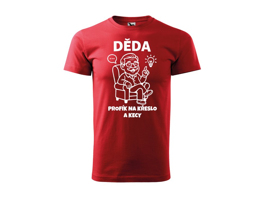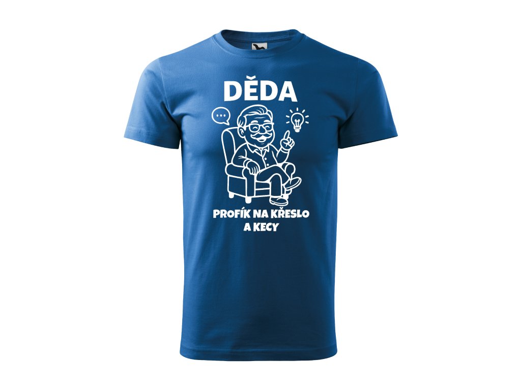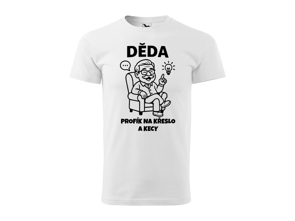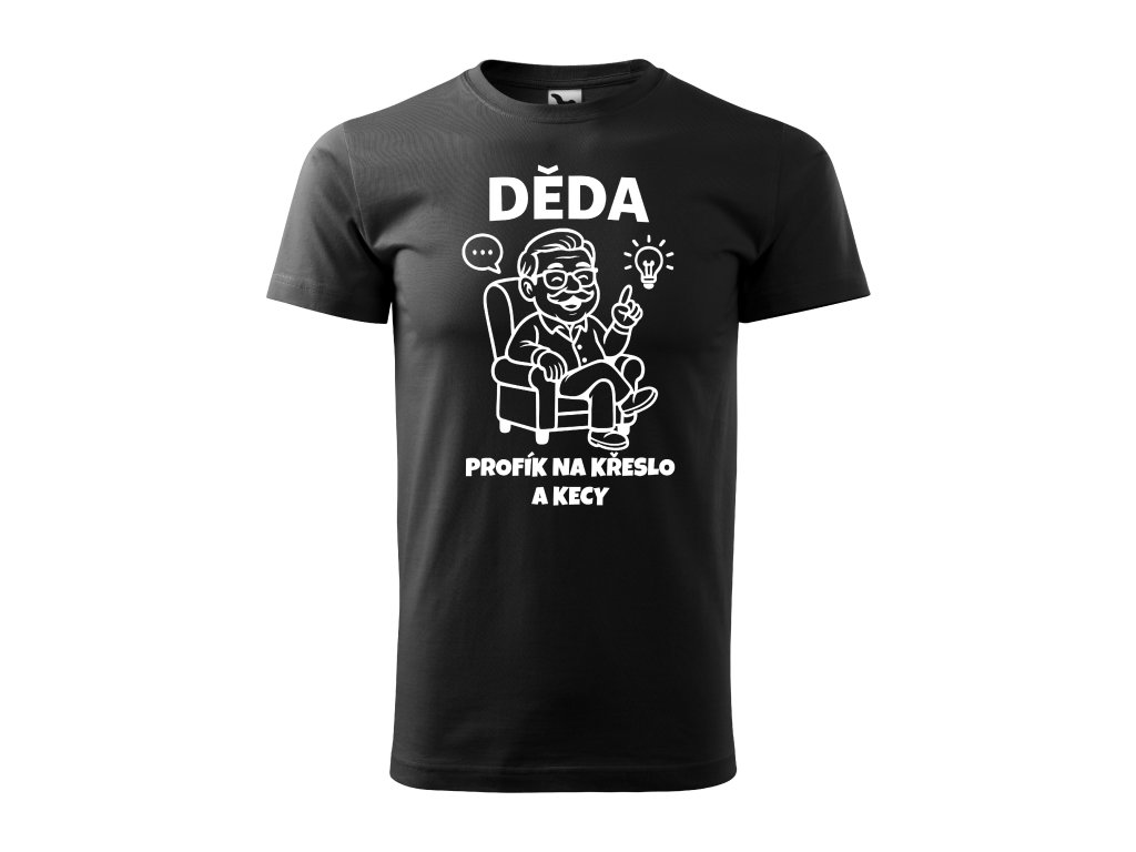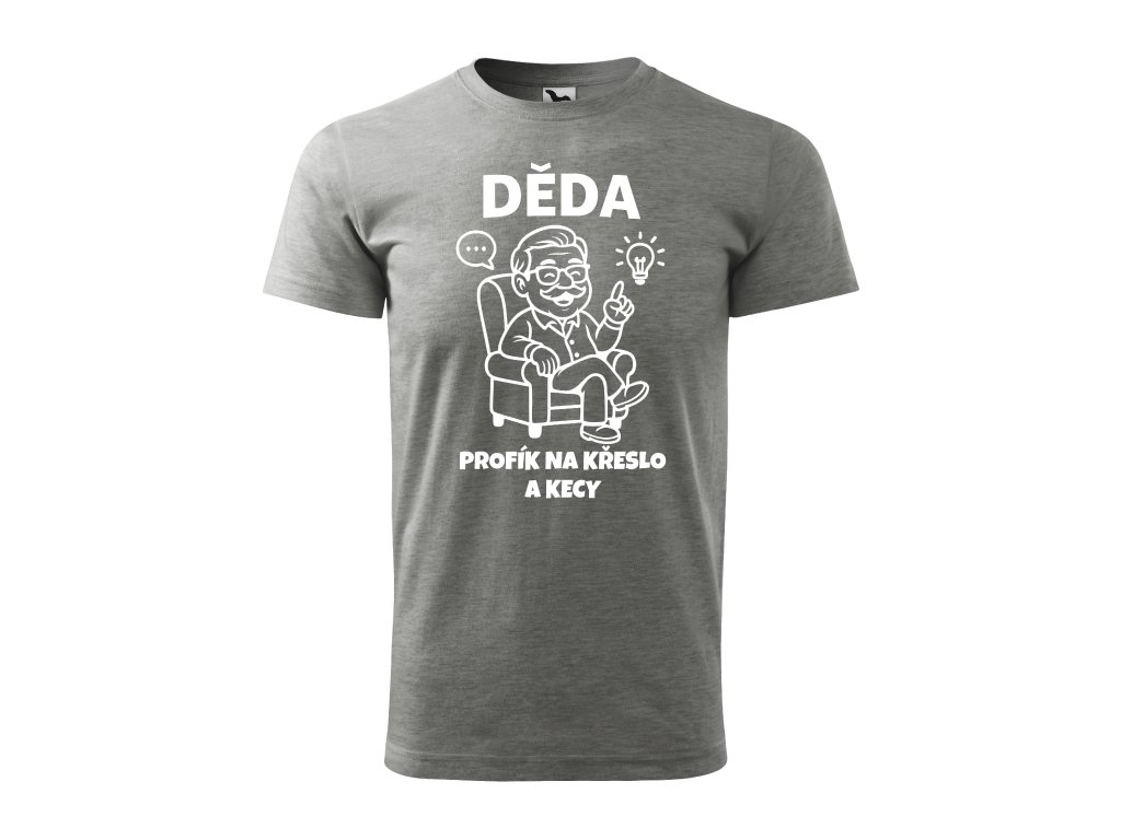 Každý děda má své království – křeslo a nekonečné zásoby historek. Toto pánské tričko s potiskem „Děda profík na křeslo a kecy“ je ideální volbou pro všechny dědečky, kteří vládnou pohodě a zábavě z obývákového trůnu.