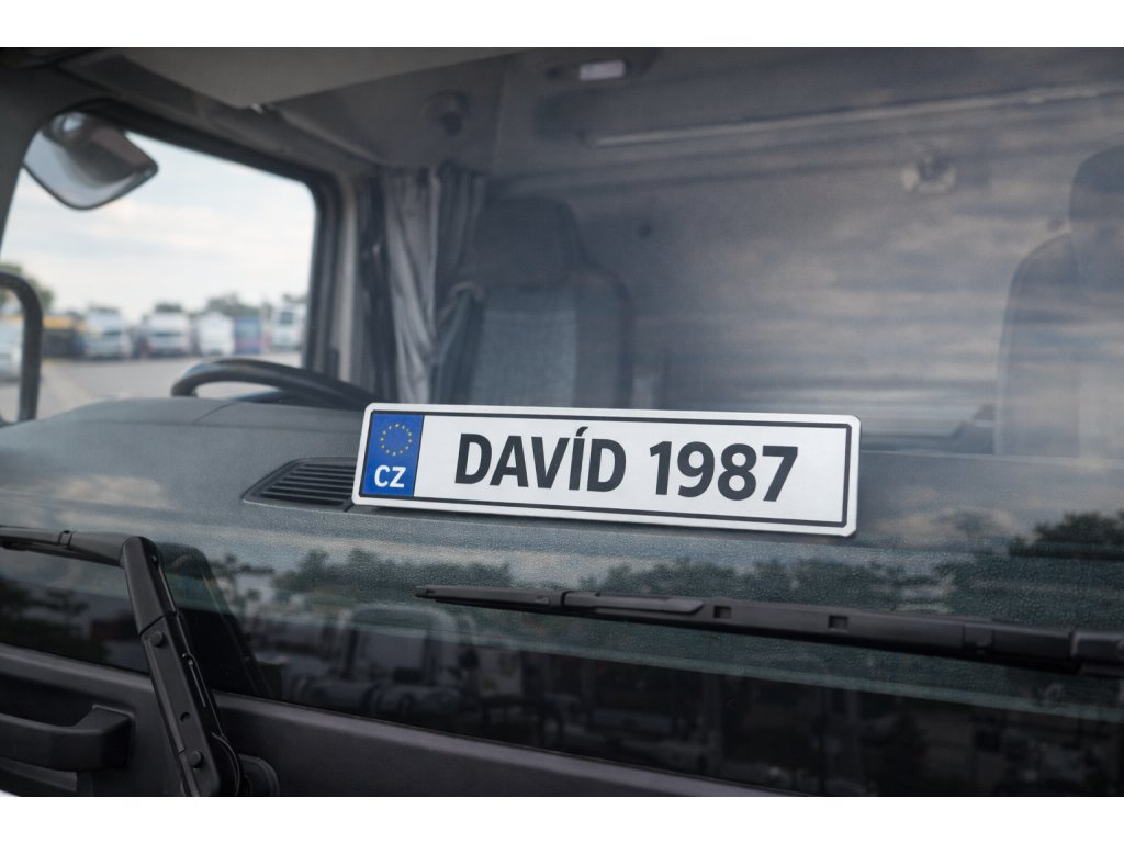 SPZ za sklo do kamionu je stylový detail, který udělá z kabiny „vaše“ místo na první pohled. V klasickém CZ vzhledu vypadá jako opravdová registrační značka, jen s vlastním jménem, přezdívkou nebo číslem podle vašeho přání. Vyrobíme ji z odolného plastu a připravíme tak, aby skvěle držela hned za čelním sklem. Skvělý tip i jako dárek pro řidiče, který žije na cestách.