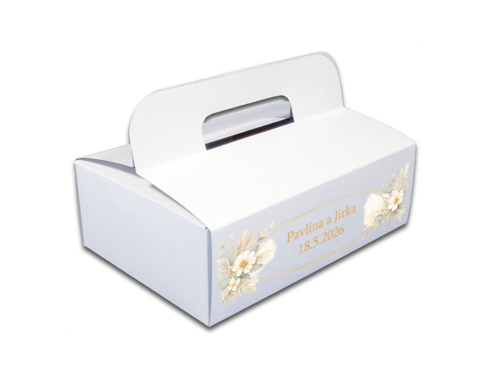 Svatební krabička na výslužky s boho květy a jmény